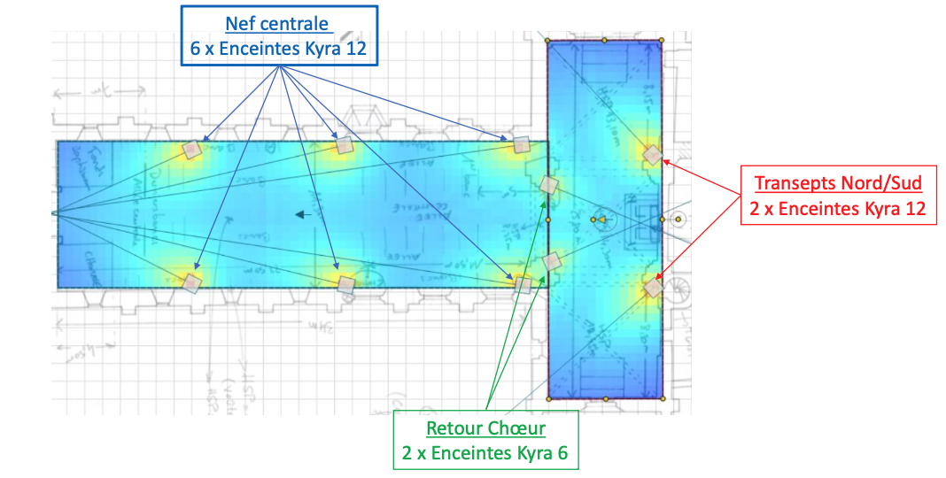 Sont prévus, outre la sonorisation de la nef par six enceintes, une transmission du son dans les deux transepts et le chœur. Cette nouvelle configuration permettra aux familles avec de jeunes enfants de suivre la messe depuis le transept Sud, près de l’autel et… près de la porte pour pouvoir commodément exfiltrer les bambins bruyants 😊. Les confessions auront alors lieu dans le transept Nord. Et grâce à la sonorisation du chœur, les servants de messe pourront plus facilement écouter le sermon.